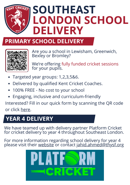 My name is Juan Jimenez, and I am the South East London Development Officer for Kent County Cricket Club. I am delighted to offer your school the opportunity to take part in a fully funded 6-week cricket programme, delivered at no cost to your school or pupils.