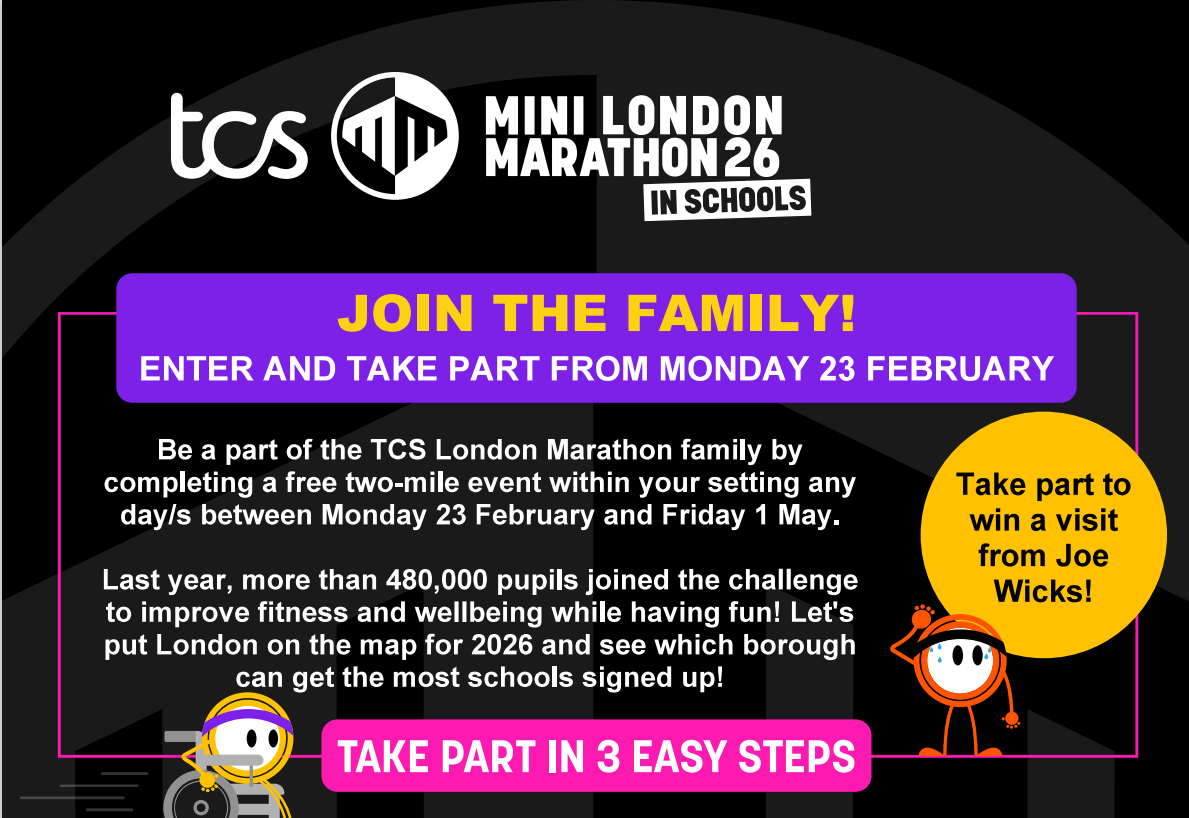 The TCS Mini London Marathon in schools is back for 2026, and it's bigger than ever. Last year, almost half a million children and young people registered to walk, jog or wheel their way around a two-mile course at their school for the TCS Mini London Marathon in Schools!